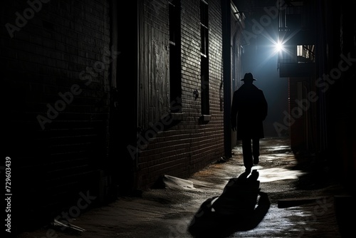 man, walking, dark, alleyway, night, dimly, lit, shadow, darkness, urban, street, landscape, lone, figure, mystery, eerie, atmospheric, exploration, night time, gritty, danger, suspense, environment, city landscape, setting, midnight, city, light, evening, hidden, concealed, lurking, skittish, obscured, unlit, decay, abandoned, narrow, pathway, alleyway, corner, desolate, sinister, silhouette, unknown, enigmatic, sole, person, mysterious