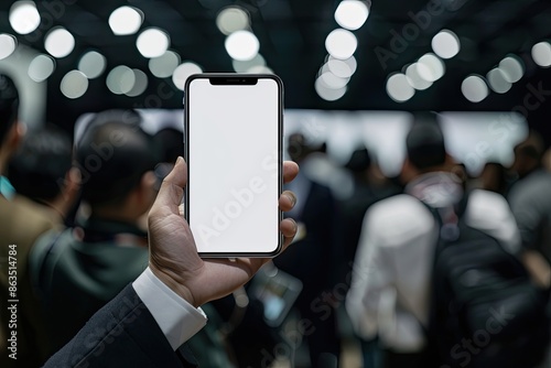 Man wearing a professional suit, holding up an phone with his hand