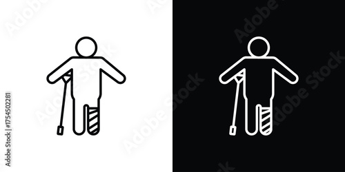 Man with broken leg icon in black line illustration. Design logo for app, UI.