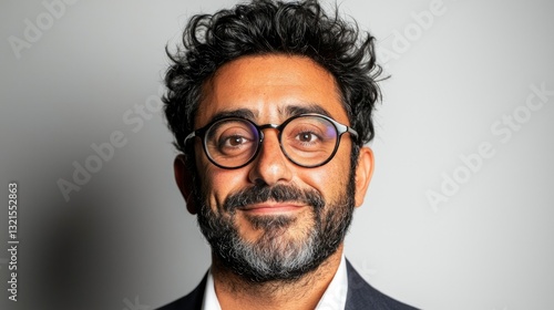 Man with glasses, cheerful expression