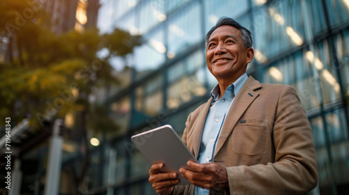 business, senior, technology, tablet, professional, corporate, executive, man, smiling, office, building, modern, entrepreneur, mature, adult, happy, work, career, leadership, life events, wisdom, urban, success, confident, digital, device, casual attire, smart, lifestyle, innovation, communication, city, glasses, facades, district, mobile, tech, online, browsing, cyberspace, manager