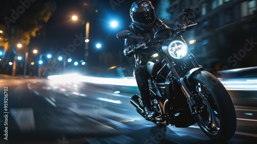 man with helmet and black vest driving a motorcycle on the ROAD WITH SWEEPING EFFECT