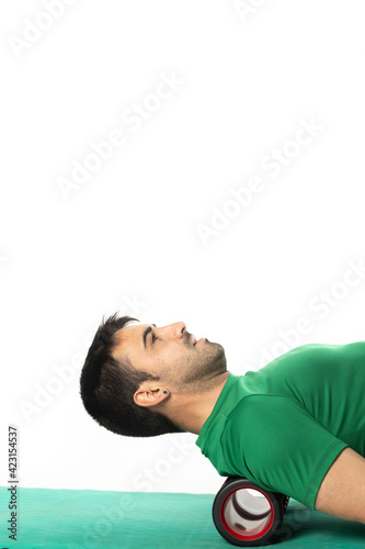 healthy, physical exercise, man, training, exercise, male, roller, gym, equipment, massage, fitness, white, body, foam, sport, activity, young, adult, background, posing, fun, athletic, lifestyle, 1, power, strong, caucasian, wellness, sportsman, physique