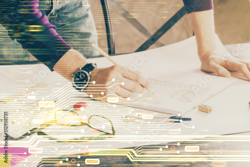 technology, ai, artificial, intelligent, software, innovation, concept, digital, machine, compute, security, network, future, mobile, solution, robot, brain, business, background, double, multi, exposure, vignetting, hand, man, writing, pen, notepad, businessman, designer, interactive, global, finance, research, note, brainstorm, single, cyberspace, report, document, financial, job, memory, table, seminar, book