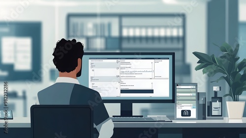 task, concentration, project, workplace, chart, employee, analysis, comfortable, shadow, contemporary, screen, working, sharpened, laptop, men at work, datum, desk, grey, corporate, professional, minimalist, productivity, graph, simple, business meeting, office, chair, interior, computer-screen, computer, composition, home office, man, business, light, technology, white, modern, digital, clean, blue, houseplant, design, graphic design, blurred background, green, office supply