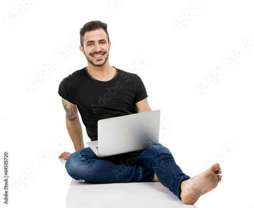 man, laptop, working, technology, happy, student, sitting, computer, cyberspace, smile, home, floor, success, relax, latin, hispanic, successful, photogenic, young, study, casual attire, beauty, expression, confident, beautiful, cute, friendly, learning, lifestyle, smiling, attractive, people, looking, portrait, pretty, enjoy, youth, natural, white, background, caucasian, entertainment, wireless, 20s, copy space