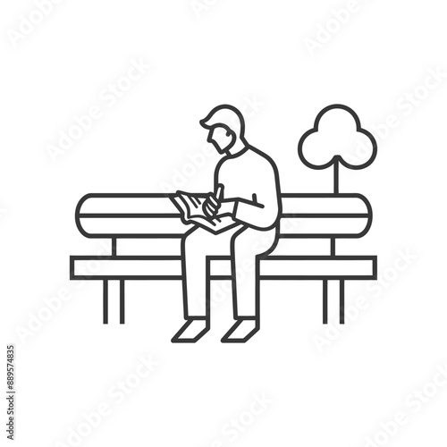 man writing on the book while sitting in minimalist line art icon logo symbol