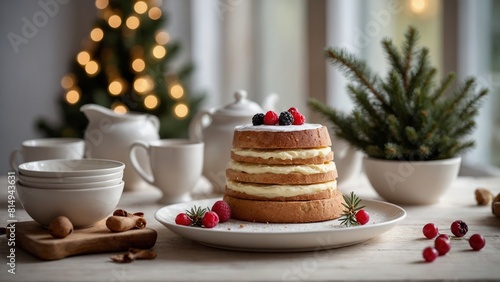 cake, food, dessert, sweet, christmas, chocolate, cream, cup, hot drink, plate, pastry, delicious, holiday, tasty, decoration, table, snack, fresh, breakfast, closeup, epicure, baked, tea, fruit, strawberry