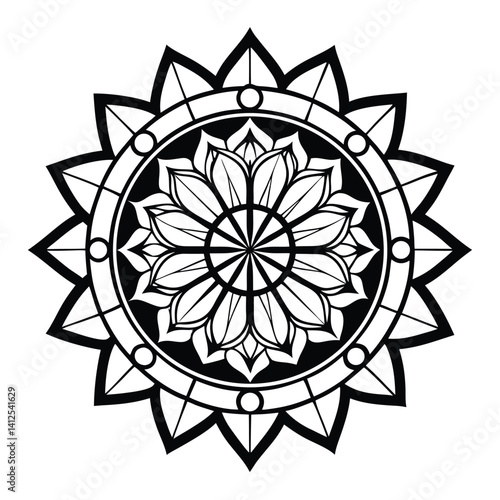 vector, floral, flower, art, illustration, ornament, design, circle, symbol, mandala, round, drawing