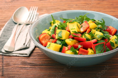 Mango salad with pepper and parsley in a bowl