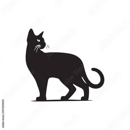 Manx Cat Vector Silhouette: Tailless Feline in Striking Profile, Showcasing Unique Breed Features for Artistic Illustrations, Pet Logos, Minimalist Designs, and Creative Animal-Inspired Graphic Projec