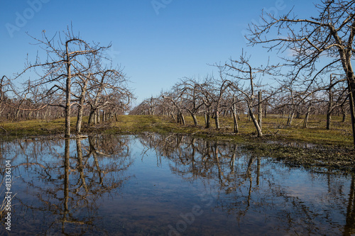 Many Apple Trees in a flooded field