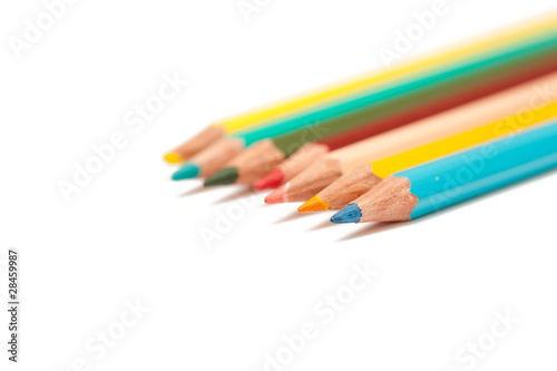 Many colored pencils isolated on white
