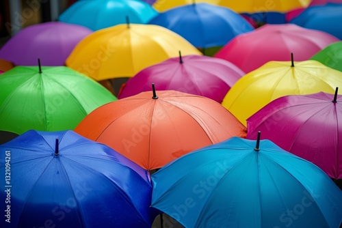 Many colorful umbrellas. Rainbow gay pride protection