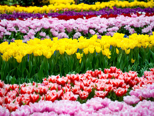 Many colourful tulips