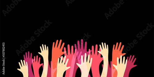 illustration, charity, colourful, concept, up, arm, joy, human, help, happy, hand, group, paper, 5, party, thumb, design, crowd, volunteer, collection, vote, celebration, background, voting, art, silhouette, raised, people, many, love, fun, logotype, diversity, family, palm, friendship