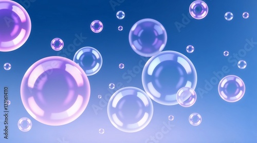 Many iridescent soap bubbles floating in the air perfect for backgrounds, social media posts, print designs, wallpaper, or beauty product marketing.