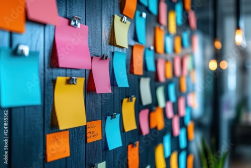 sticky, note, board, workspace, colourful, brainstorming, idea, modern, office, creativity, organisation, planning, decor, inspiration, design, yellow, pink, blue, green, writing, collaboration, task, management, productivity, communication, team, workstation, background, solution, visual, set, arrangement, light, sharpened, innovation, strategy, concept, development, mix, texture