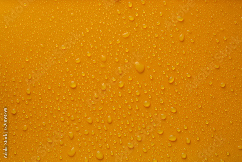 Many water drops on bright orange background