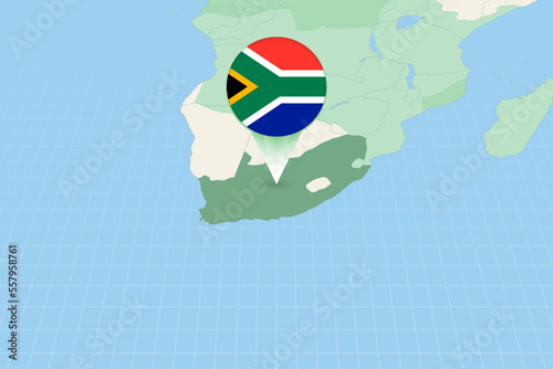Map illustration of South Africa with the flag. Cartographic illustration of South Africa and neighboring countries.
