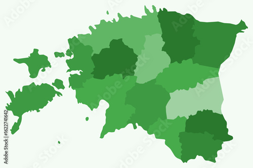 Map of Estonia with regions. Just a simple country border map with region division. Green color palette. Blank Republic of Estonia shape with administrative division. Vector illustration.