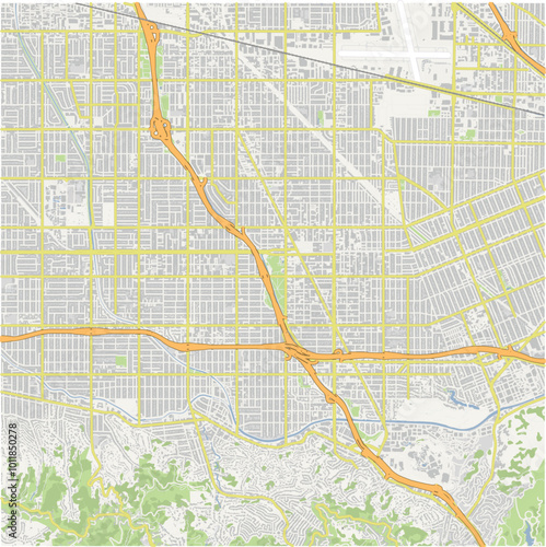 Map of North Hollywood in California in a normal road map style. Contains layered vector with roads water, parks, etc.