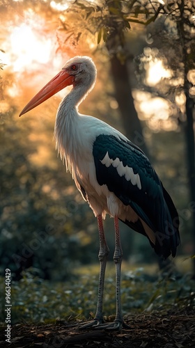 Marabou Stork Bird in Nature, Photo Realistic, Wallpaper, Cover and Screen for Smartphone, PC, Laptop, 9:16 and 16:9 Format