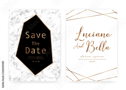 Marble wedding invitation card, Save the date wedding card, Modern card design with marble texture, Vector illustration.