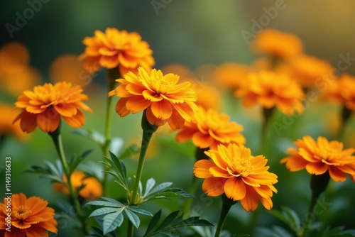 Marigold flowers swaying gently in the autumn breeze, garden flowers, autumn breeze