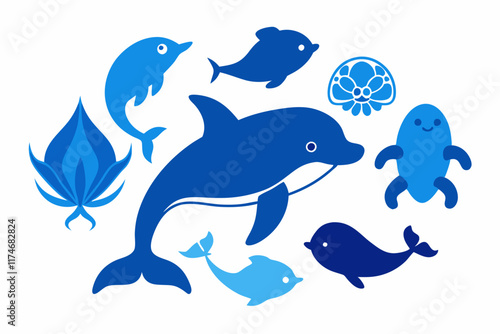 Marine Life Vector PNG: Dolphin, Fish, Turtle, and Sea Creatures for Ocean-Themed Designs.