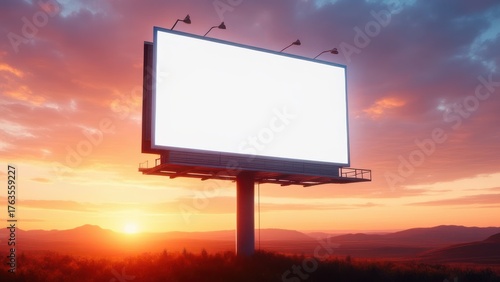 Marketing Billboard. Empty Large Format Sign against a Sunset Evening Sky. Mockup Template.