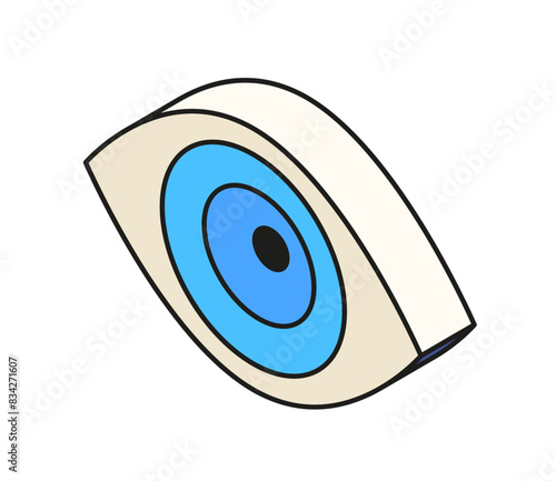 Marketing isometric icons. Colorful sticker with eye as symbol of social media blog statistics. Reach, audience engagement and views. Cartoon 3D vector illustration isolated on white background