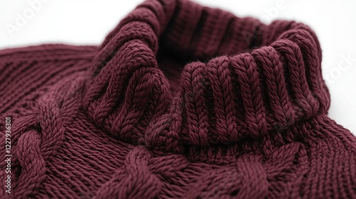 sweater, turtleneck, maroon, knit up, winter, fashion, texture, wool, clothing, apparel, textile, garment, style, cosy, warm, comfortable, soft, autumn, fall, burgundy, red, thread, threaded, fabric, design, detail, closeup, macro, background, white, studio, photo, image, product, shop, online, sale, collection, new, trend, season, stylish, elegant, classic