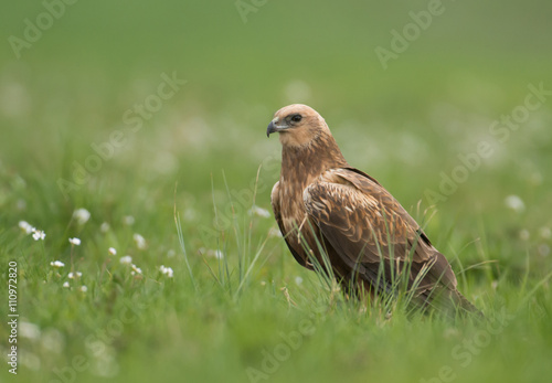 Marsh harrier (Circus aeruginosus) in spring scenery