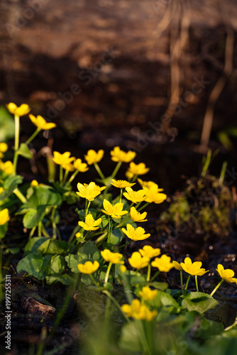Marsh marigolds blooming in a wetland meadow