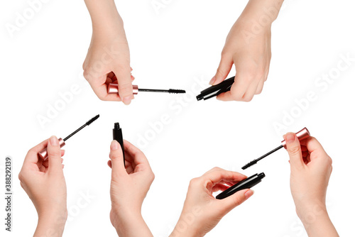 mascara, whipped, make-up, accessory, brush, care, closeup, closeup, colours, compact, cosmetic, decorative, detail, elegance, eye, fashion, female, feminine, hand, hold, image, isolated, keep, lady, macro, make-up, object, personal, tool, tube, white, woman