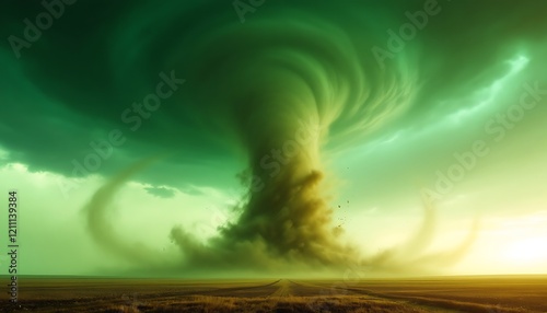 Massive Green Tornado Over Flatlands Dramatic Weather Photography