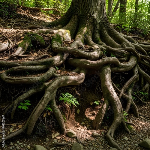 Massive Tree Roots Exposed in Forest Sunlight