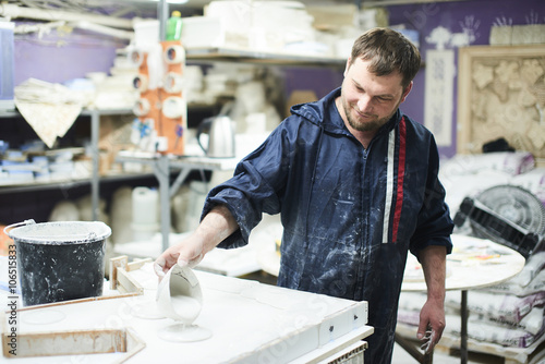 business, enterprise, workshop, production, exclusive, hand-made, product, gypsum, unique, blurred, background, molding, in plaster, man, special, tool, equipment, manufacture, white, home, interior, molding, decoration, decor, design, detail, style, product, craft, construction, element
