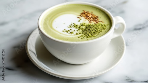 matcha, latte, hot drink, tea, drink, beverage, cup, mug, saucer, foam, green, powder, creamy, delicious, hot, warm, fresh, healthy, energy, vitality, caffeine, dessert, sweet, favor, aroma, tasty, relaxing, morning, afternoon, breakfast, brunch, food, cookery, eatery, cafes, bar, stylish, elegant, simple, art, design, texture, marble, background, white, top