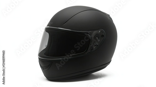 Matte black motorcycle helmet with a modern, minimalistic design, perfectly captured on a white background.