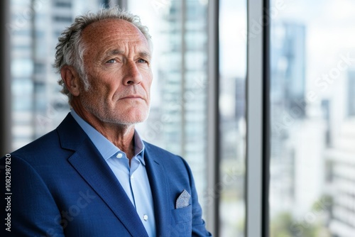 businessman, window, office, serious, thoughtful, professional, corporate, executive, leadership, authority, pensive, contemplative, urban, city landscape, suit, attaching, formal, business, career, success, life events, wisdom, mature, older, corporate environment, urban setting