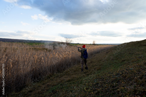 hunter, shotgun, rifle, pheasant, dog, weapon, man, hobby, duck, gun, camouflage, action, activity, animal, back, bird, camo, cocker, countryside, field, forest, german, grass, green, hunt, hunter, landscape, leisure, lifestyle, man, moving, nature, outdoors, person, pointer, recreation, reflective, shooting, spaniel, sport, vest, walking, wildlife