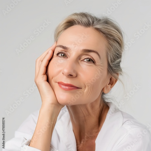 white background, white, skincare, woman, beauty, face, hair, skin, smiling, smile, person, hand, eye, looking, 1, people, teenage, fashion, care, cephalalgia, blond, model, closeup, head, clean, make-up, stress, health