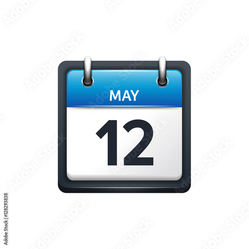 May 12. Calendar icon.Vector illustration,flat style.Month and date.Sunday,Monday,Tuesday,Wednesday,Thursday,Friday,Saturday.Week,weekend,red letter day. 2017,2018 year.Holidays.