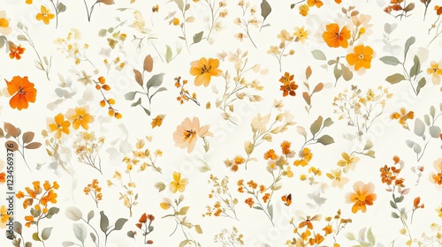 Meadow blossoms and leaves scattered in an aesthetic composition on a white background, perfect for nature-inspired designs.