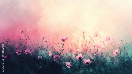 flower, nature, background, spring, blossom, field, pink, colourful, abstract, floral, summer, flora, plant, pastel, texture, beauty, art, meadow, blooming, seasonal, garden, vintage, design, wallpaper, illustration, decoration, paper, artistic, painting, image, leaf, green, sky, purple, watercolor, soft, red, bright, blur, white, brush, landscape, retro, artwork, blue, botanical, grass