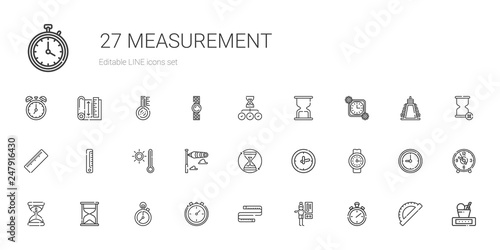 measurement, icon, set, vector, stopwatch, thermostat, measuring, tape, hourglass, watch, clock, wind sleeve, thermometer, ruler, time, weight, protractor, blueprint, symbol, signs, design, illustration, isolated, graphic, object, measure, flat, buttons, background, line, circle, speed, simple, countdown, timer, element, white, concept