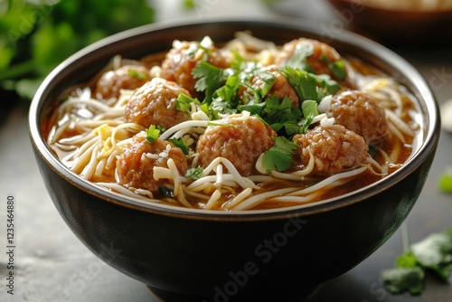 Meatball noodle soup, Asian cuisine, close-up shot, food blog (1)