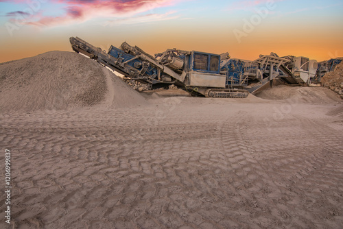 Mechanical conveyor belt to pulverize rock and stone and generate gravel